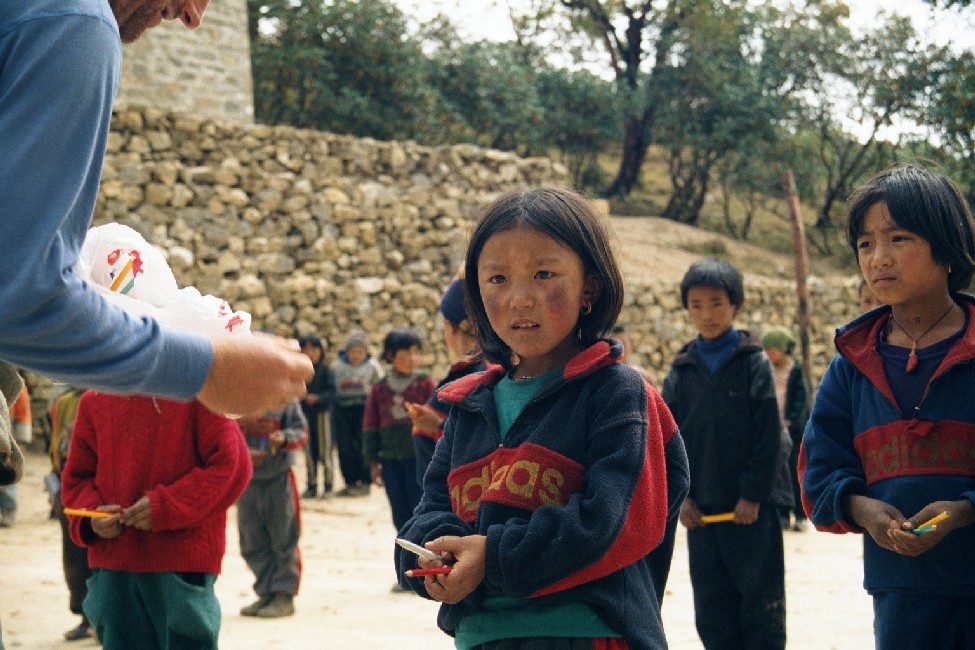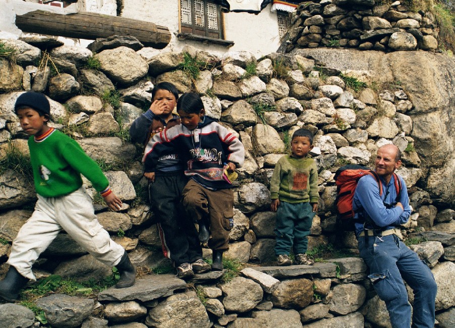 L'expression du petit garçon qui ramassait ces bouses de yack (Jakko gobol) dans sa hotte (Doko) près du moulin (hydraulique) à prière du village de Tengboche; quand je lui ai donné mon dernier criterium (sachant pertinemment qu'il ne serait pas près de retrouver des mines de rechange) il n'a pas fait «Thank you» d'ailleurs cela n'existe pas chez eux, il a fait «Waouuuh». C'est fou ce que l'on peut faire d'heureux avec de simples stylos et de vieilles frusques.