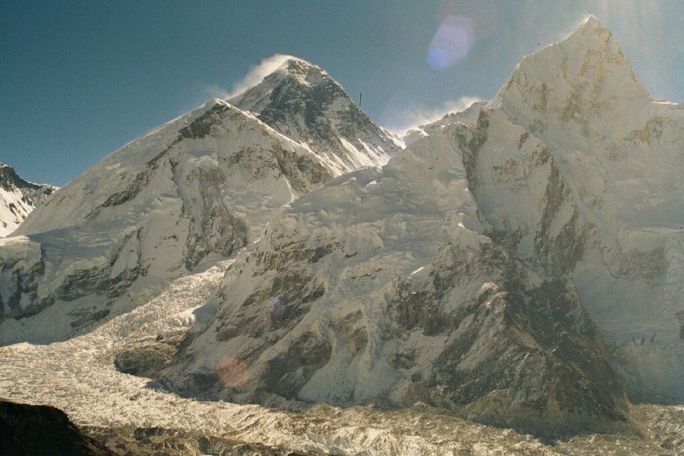 Soit dit en passant, c'est la première fois que je ressentais ce sentiment d'appartenance à la France, exportant ses meilleures valeurs, on se tenait droit, citoyens! On n'était qu'une poignée de frouzes au milieu de cars entiers de casques à pointe en short et de rosbifs causant fort (même au sommet de Kala Patthar, ça baragouinait à tue-tête, alors qu'aimer la montagne et la gravir, c'est d'abord écouter son silence, sentir le vent, sa sagesse, sa noblesse, sa pureté, sa force, observer l'oiseau… mais par pitié pas ces braillards: y'a plus de respect…).