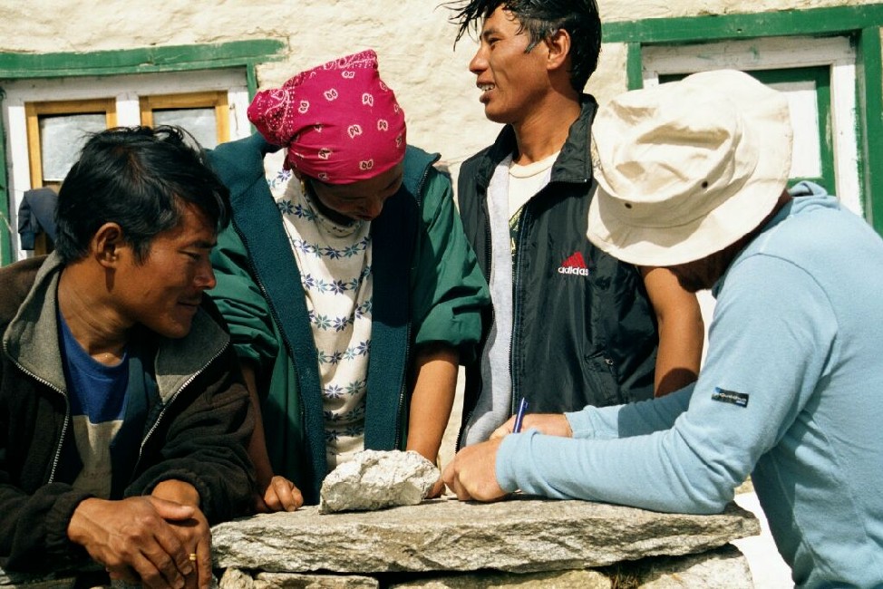 Sur les sentiers on disait Bonjour et non pas Hello (bêtement), parfois les « autochtones » nous demandaient comme un jeu, notre origine, nous répondions France (pourtant cela se voyait!?), sur le «livre d'or» du musée ethnographique de Namche Bazar, on a mis dans la colonne name: Gaillard et Peillard et dans la colonne countries: France, exprès pour montrer qu'on y était aussi (non mais des fois!)
